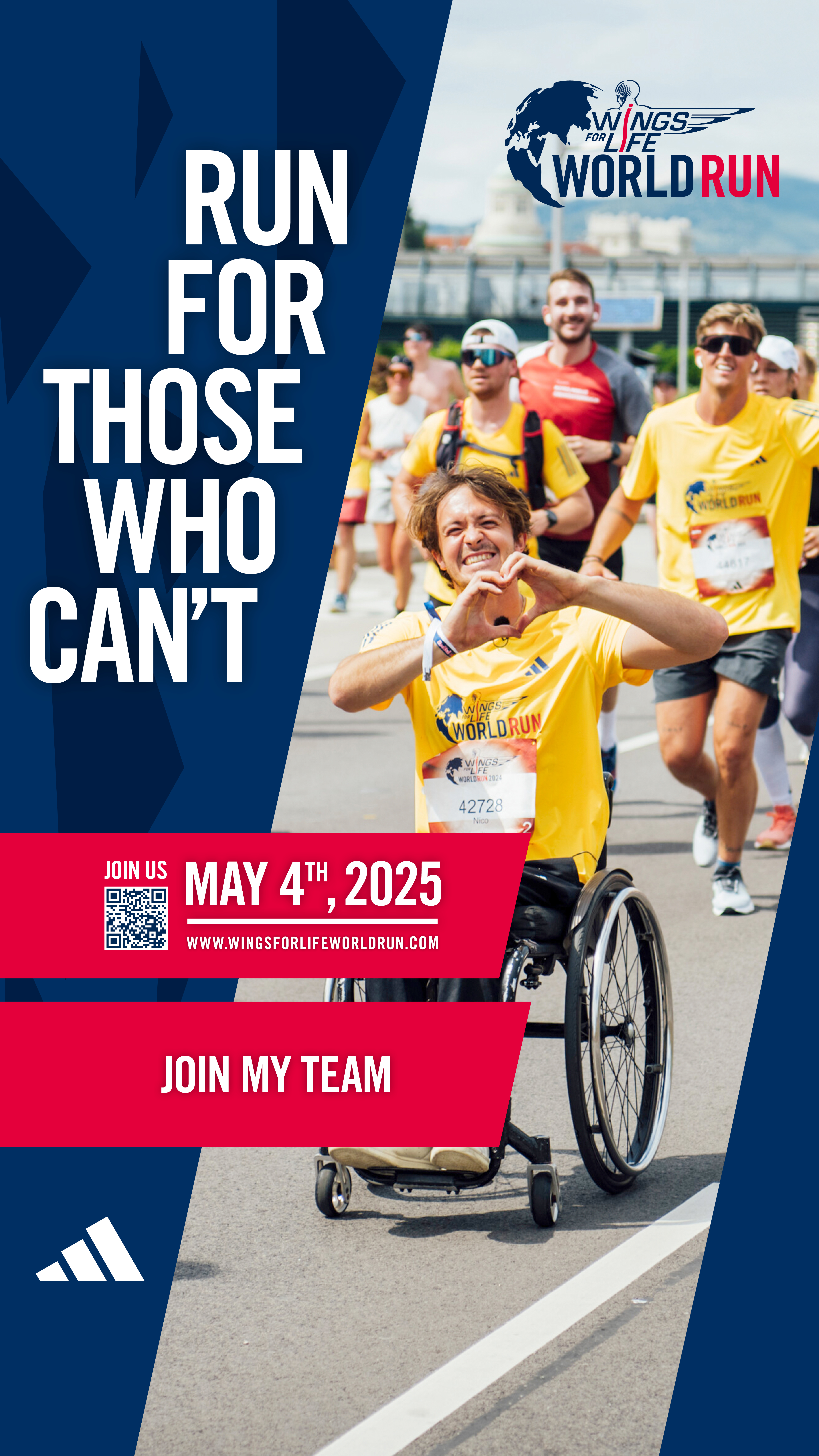 Shout about your team! Set your socials alight with your favorite Wings for Life World Run images, videos, and explainers. Download and share!